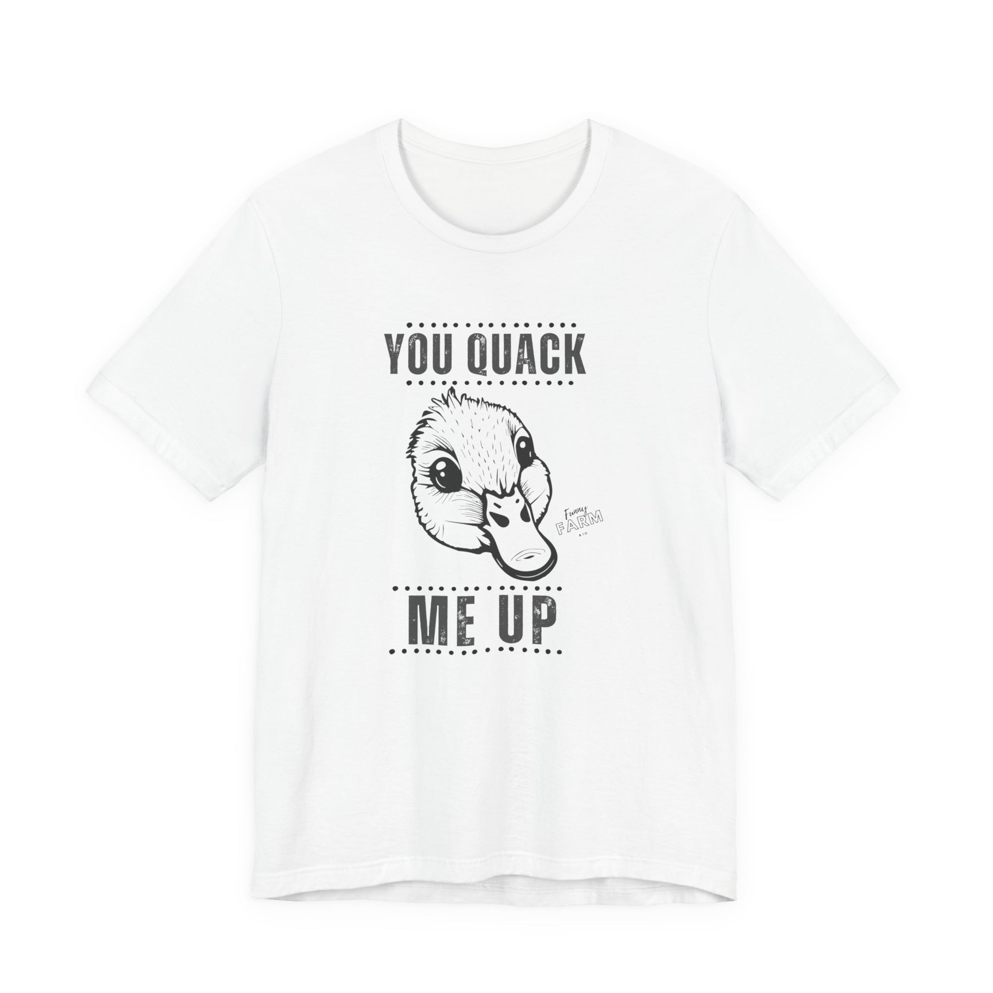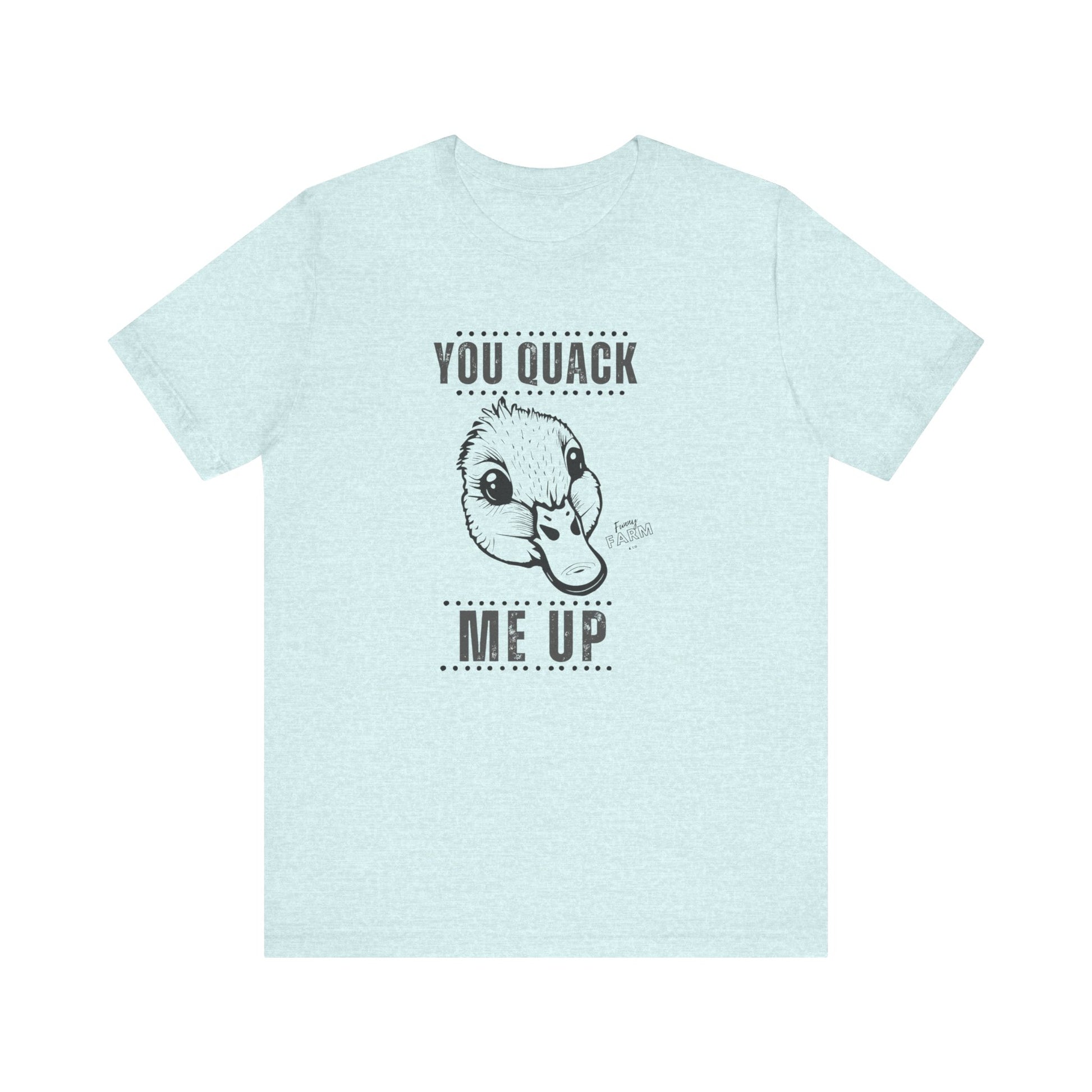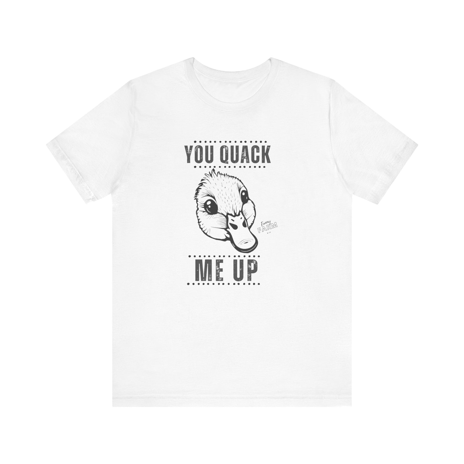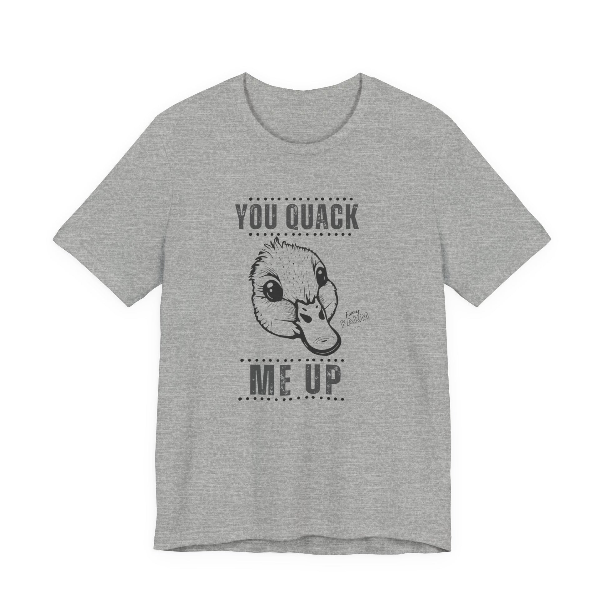 Say it loud and playful with this soft, lightweight tee that makes people smile before you even open your mouth. The short-sleeve silhouette and clean crew neckline keep things casual and confident — great for weekend coffee runs, backyard barbecues, or a lazy morning on the porch. The bold “YOU QUACK ME UP” lettering has a crisp, slightly cheeky look that pairs well with denim, joggers, or layered under a flannel. Breathable Airlume cotton feels gentle against the skin, moves with you, and holds its shape wash after wash. Wear it when you want to nudge a laugh into the room, brighten someone’s day on a walk, or keep the mood light at casual gatherings.