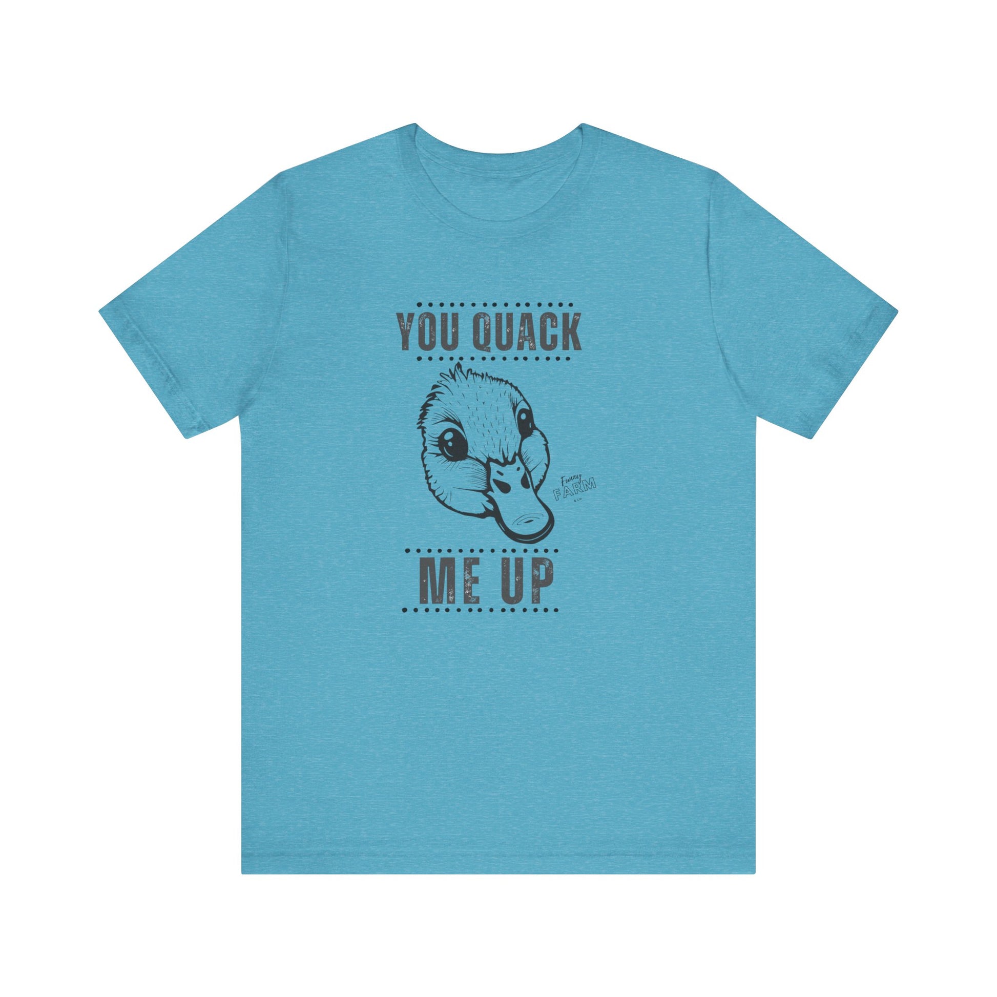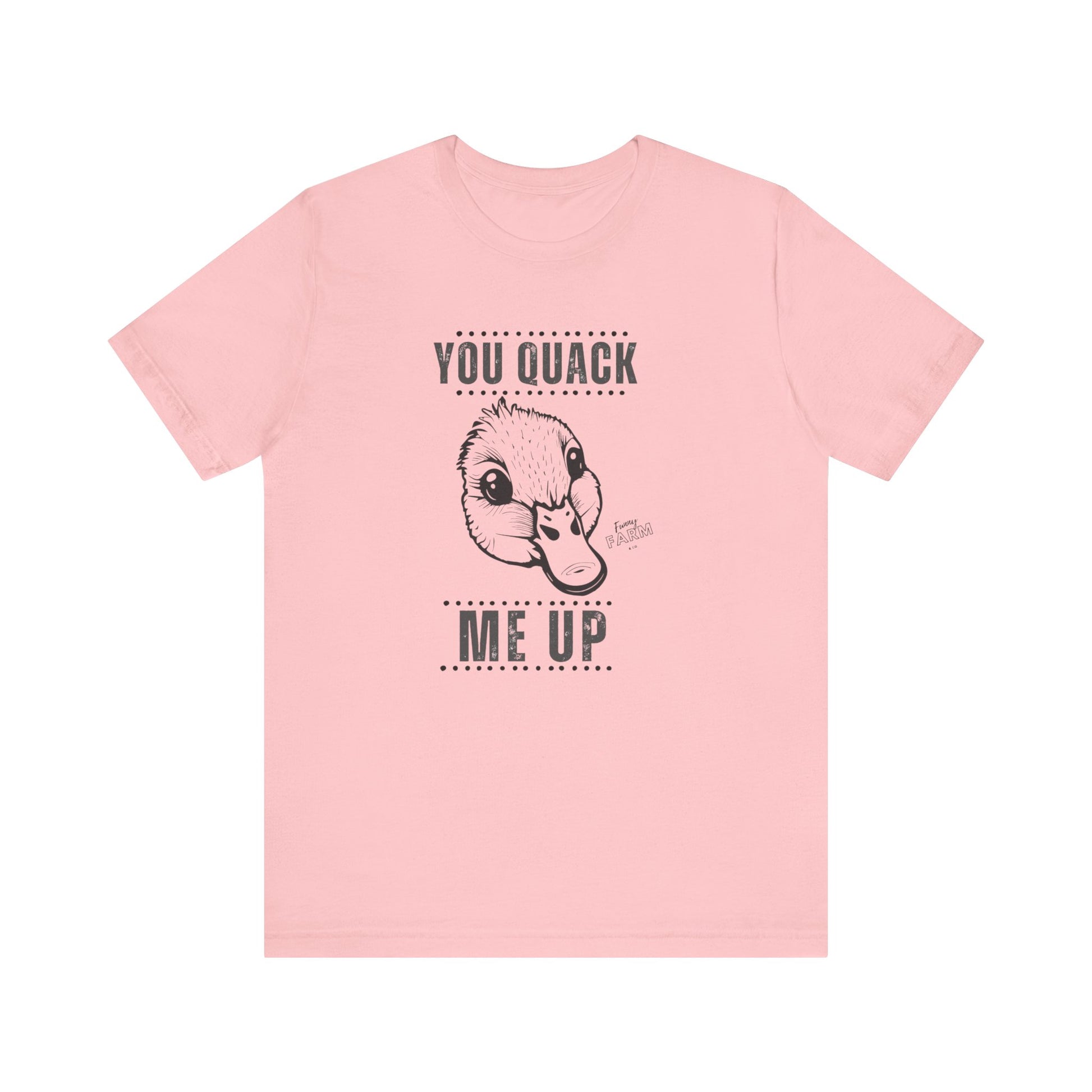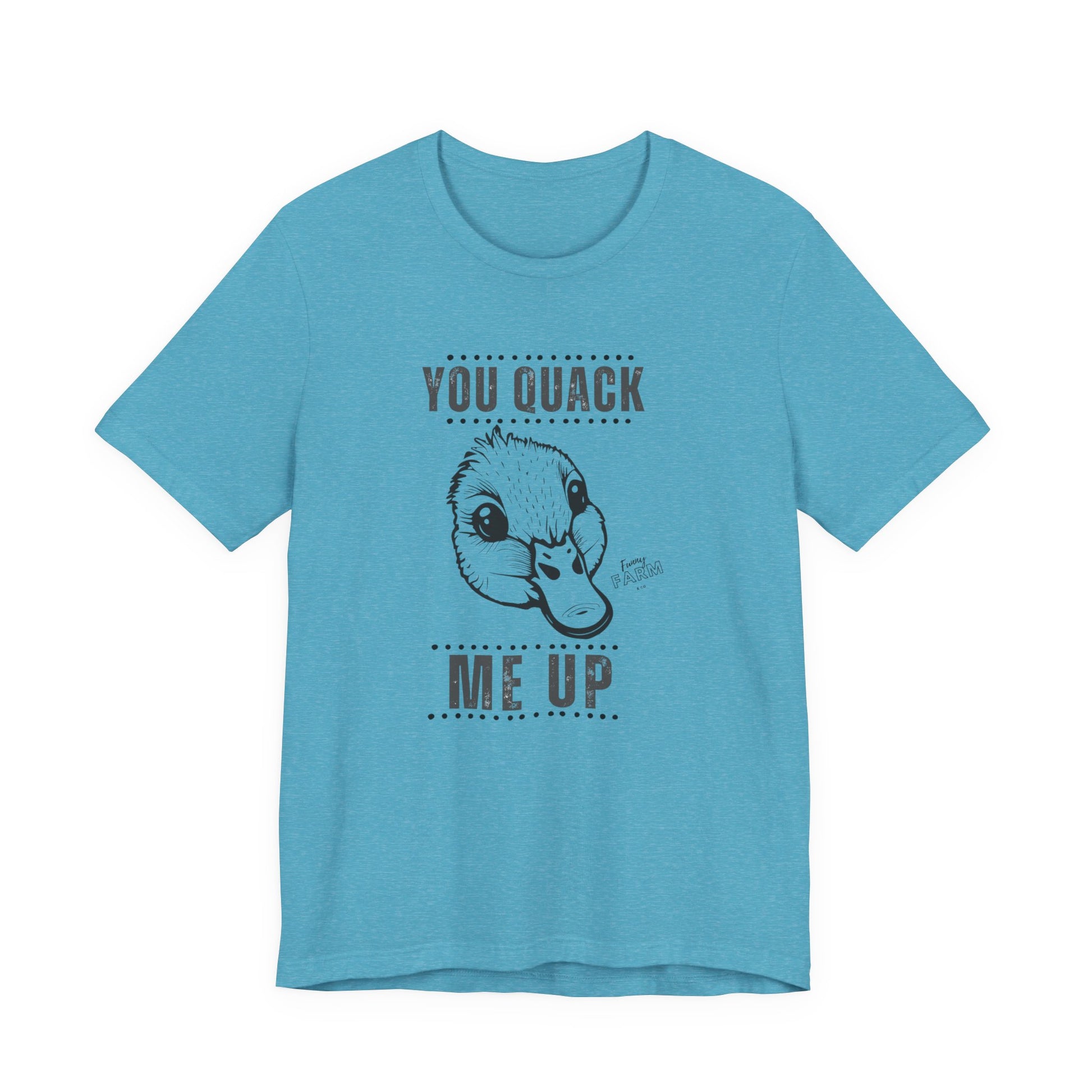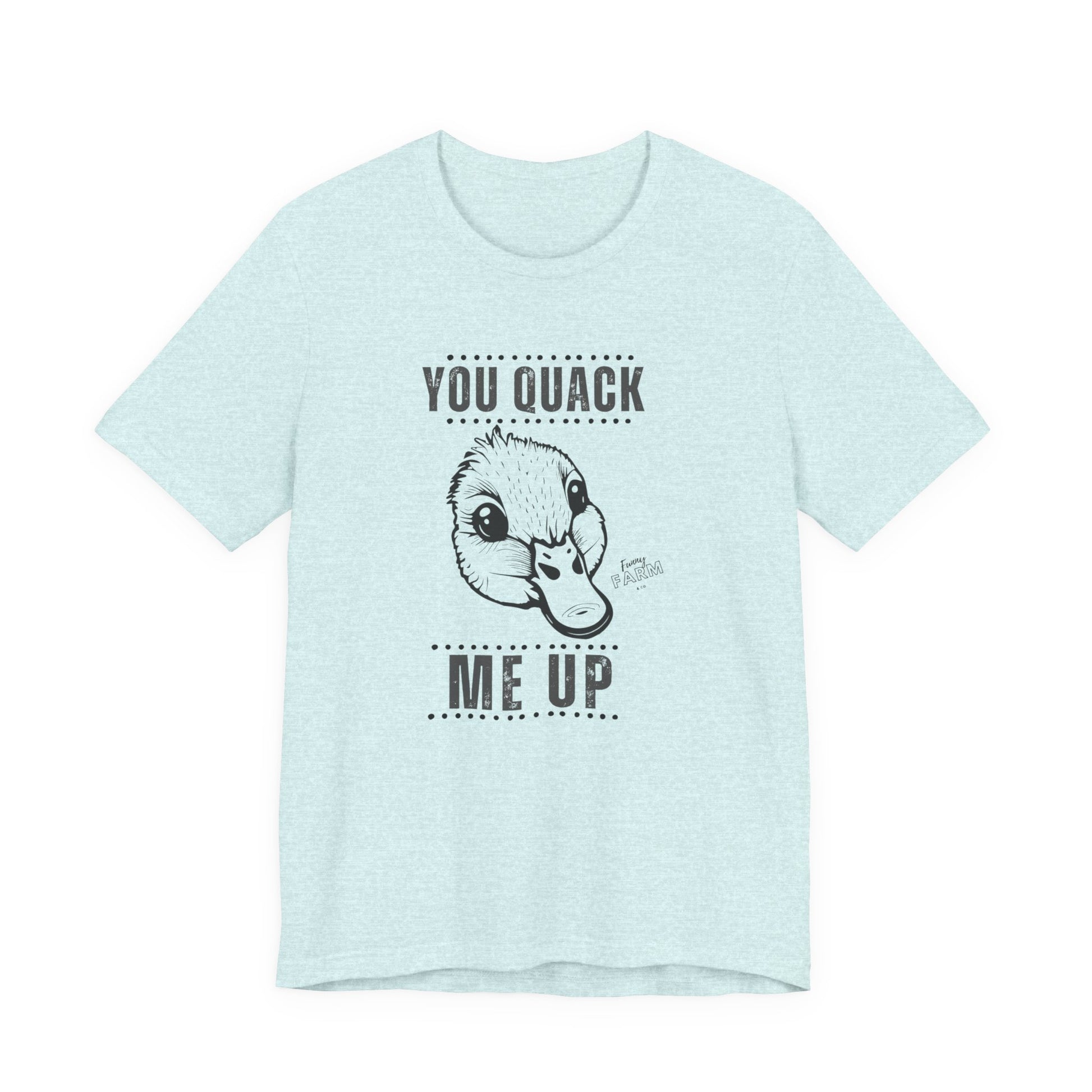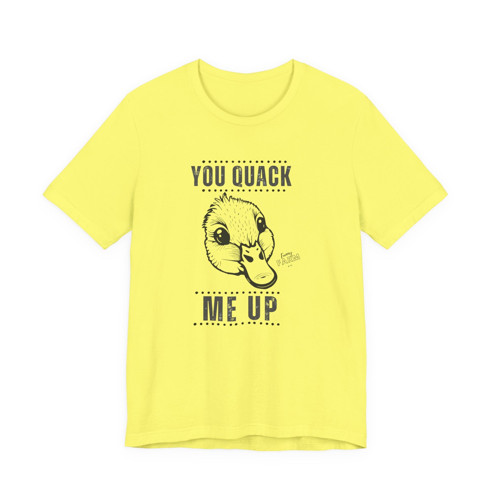 Say it loud and playful with this soft, lightweight tee that makes people smile before you even open your mouth. The short-sleeve silhouette and clean crew neckline keep things casual and confident — great for weekend coffee runs, backyard barbecues, or a lazy morning on the porch. The bold “YOU QUACK ME UP” lettering has a crisp, slightly cheeky look that pairs well with denim, joggers, or layered under a flannel. Breathable Airlume cotton feels gentle against the skin, moves with you, and holds its shape wash after wash. Wear it when you want to nudge a laugh into the room, brighten someone’s day on a walk, or keep the mood light at casual gatherings.